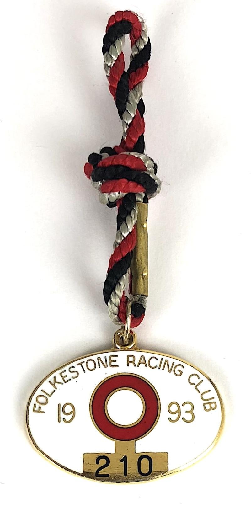 A good original gentlemen's '1993 Folkestone Racing Club enamel badge', impressed to the front with official issue number '210'. Very good condition, no damage to the enamel and complete with original cord.