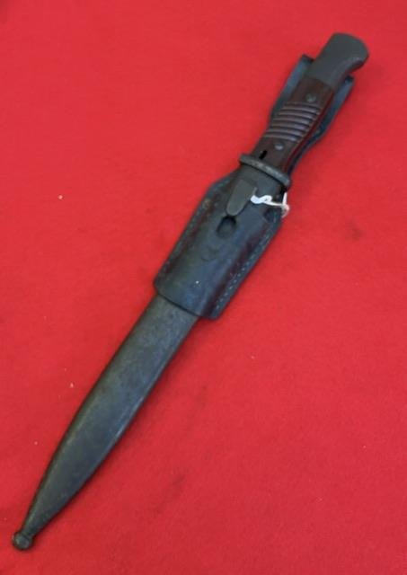 Alex Coppel late war K98, matching number,blade in near mint condition and shows typical late war construction. Dent free scabbard, grip in excellent condition. Press stud in good working order, and comes with leather frog.Age restricted item