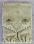 Original period manufacture. Green canvas magazine pouch for the 1911 Colt automatic pistol. MILLS manufacture, two rimless eagle snap buttons. MILLS marked under the flap with what might be a 1914 date. A sound pouch, normal age and wear, no fraying or tears to the canvas.