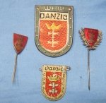 German WWII Free City of Danzig Stickpin & Badge Lot, 4 Pieces