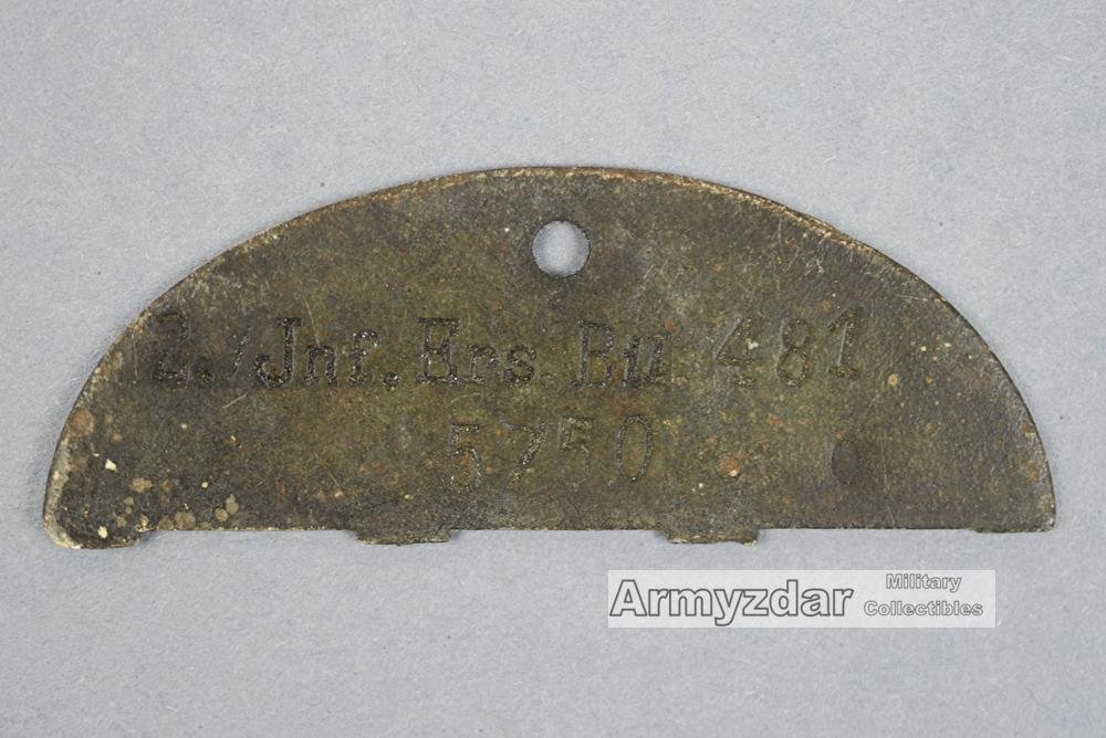 This is a nice relic half dog-tag of Wehrmachtu Infantry member.2./Inf.Ers.Btl.481 = 2. Infanterie Ersatz Battailon 481