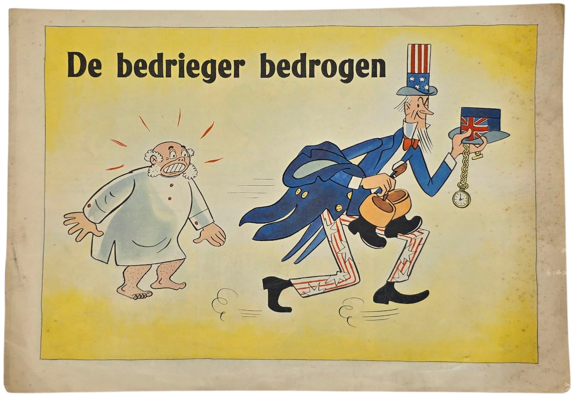 Original WW2 Dutch Collaboration NSB Brochure - De Bedrieger Bedrogen, Manfred Schmidt (1942)De Bedrieger Bedrogen is an anti-British and anti-American cartoon about England ''playing'' the world, and then when they are in trouble they get ''played'' by the United States. Manfred Schmidt is known for his post-war comic strip Nick Knatterton, from the 1950sOriginele Wo2 Nederlandse Collaboratie NSB Brochure - De Bedrieger Bedrogen, Manfred Schmidt (1942)De Bedrieger Bedrogen is een anti-Britse en anti-Amerikaanse strip over Engeland die de wereld ''oplicht'' en wanneer Engeland zelf in de problemen zit dat ze zich laten ''oplichten'' door Amerika. Manfred Schmidt is bekend geworden door zijn na oorlogse strip Nick Knatterton uit de jaren 50.