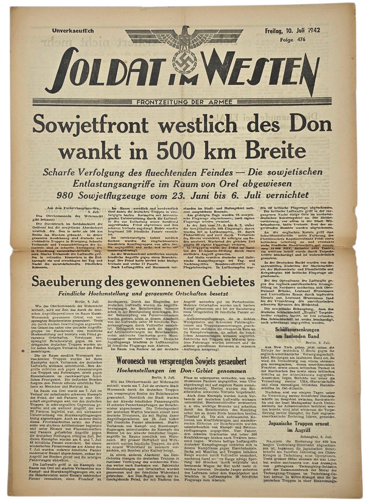 Original WW2 German Newspaper - Soldat im Westen Folge 476, 10 July (1942)Originele Wo2 Duitse Krant -Soldat im Westen Folge 476, 10 July (1942)