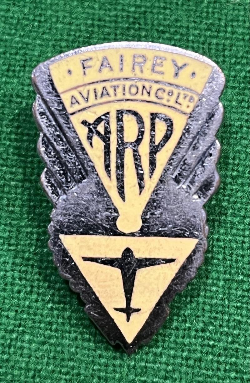 Scarce chrome and enamel lapel badge worn by members of the Fairey Aviation ARP parties. This pattern of badge comes in various colours but unfortunately the significance is not known at the moment. Half moon lapel fitting to the reverse, manufacturer marked ' Thos Fattorini, B'ham '. Good, used condition with some surface abrasions.