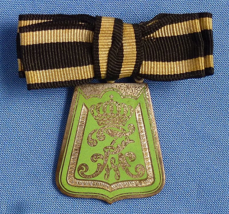 Very good condition, showing wear to the finish but making a fine appearance. The reverse is maker marked by the firm of Donner of Elberfeld, The badge measures 1-1/8 X 1-1/4 inch.