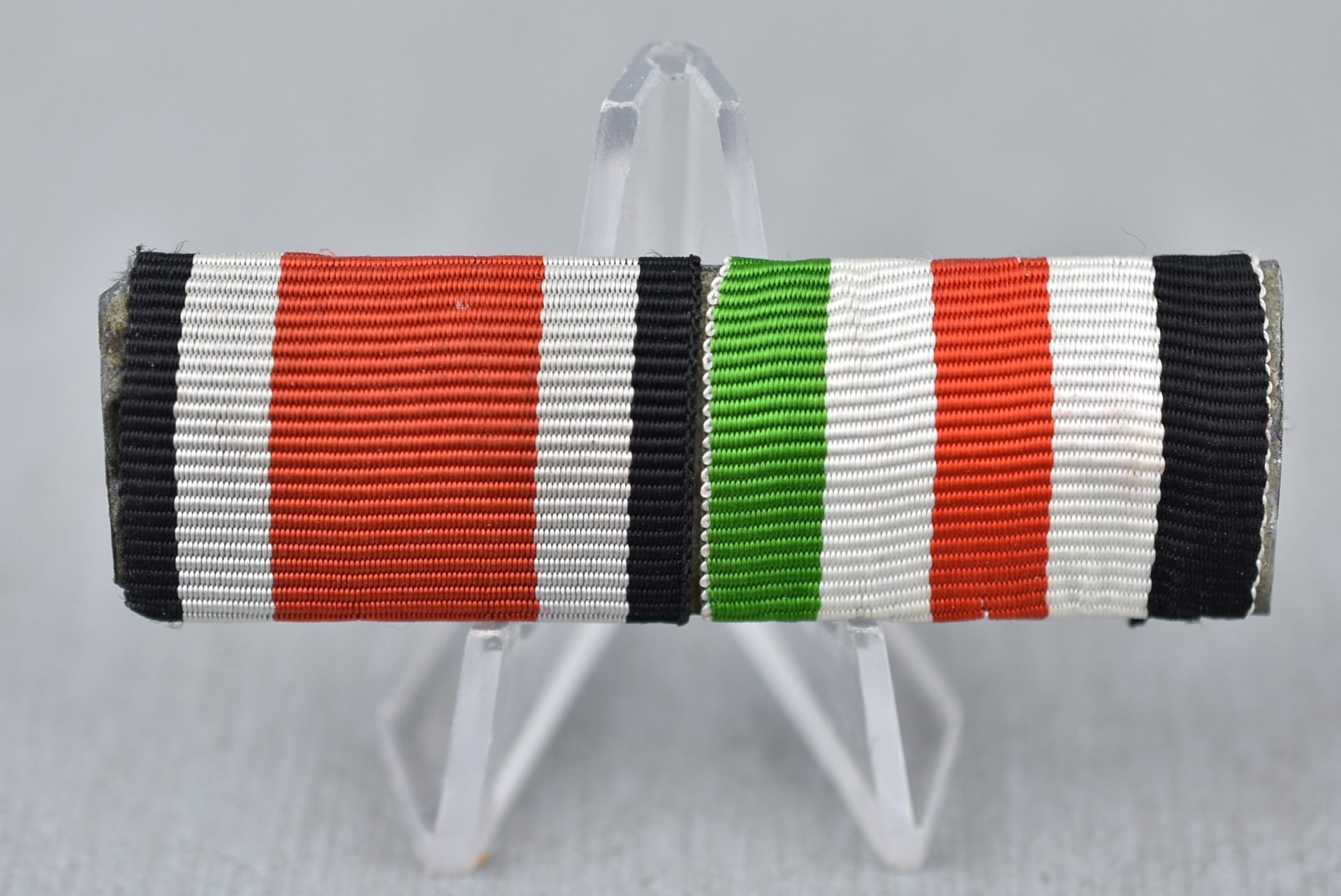 Very nice not often encountered ribbon bar having a Iron Cross 2nd class and a Commemorative medal for the Italian-German campaign in Africa (Erinnerungsmedaille für dem Italienisch-Deutsche feldzug in Afrika).