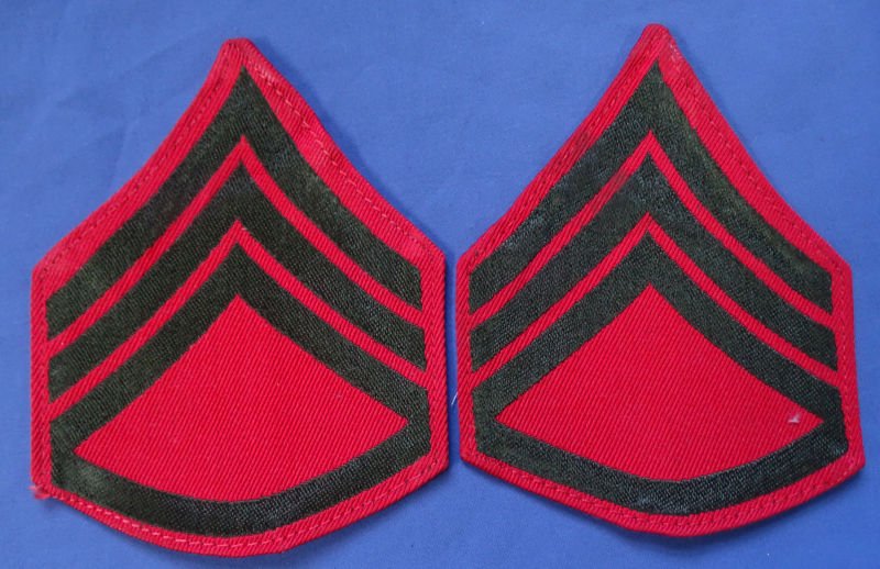 Pair WWII Marine Corps Staff Sergeant Woven Chevrons