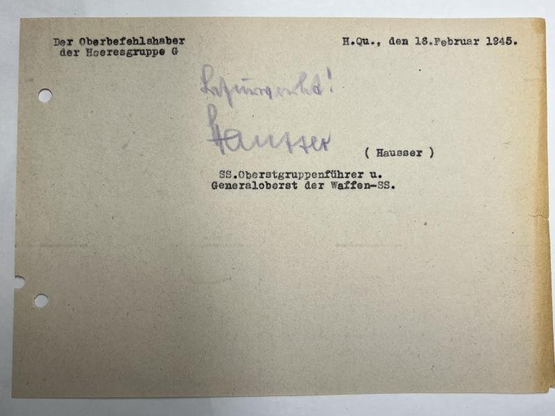 Signature - 'Oberbefehlshaber der Heeresgruppe G' - Hausser