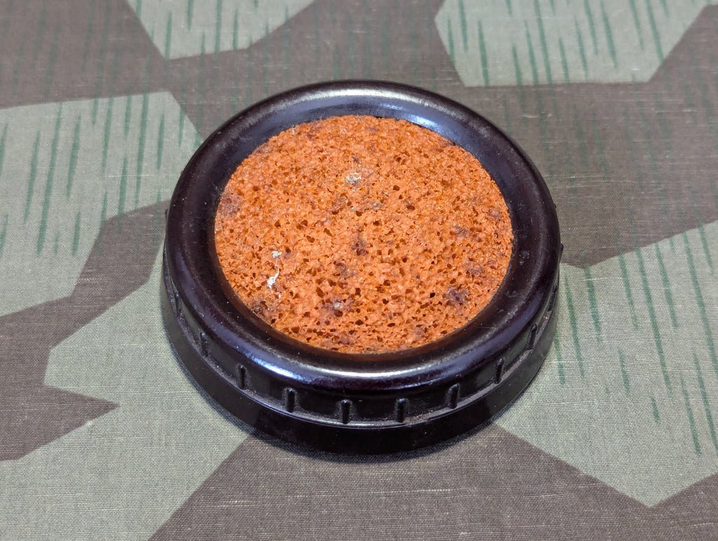 Period (1930's-1950's) Bakelite finger and postage stamp moistening pad made by Famos in good condition, just needs a cleaning. The sponge has some staining. Great office display accessory.