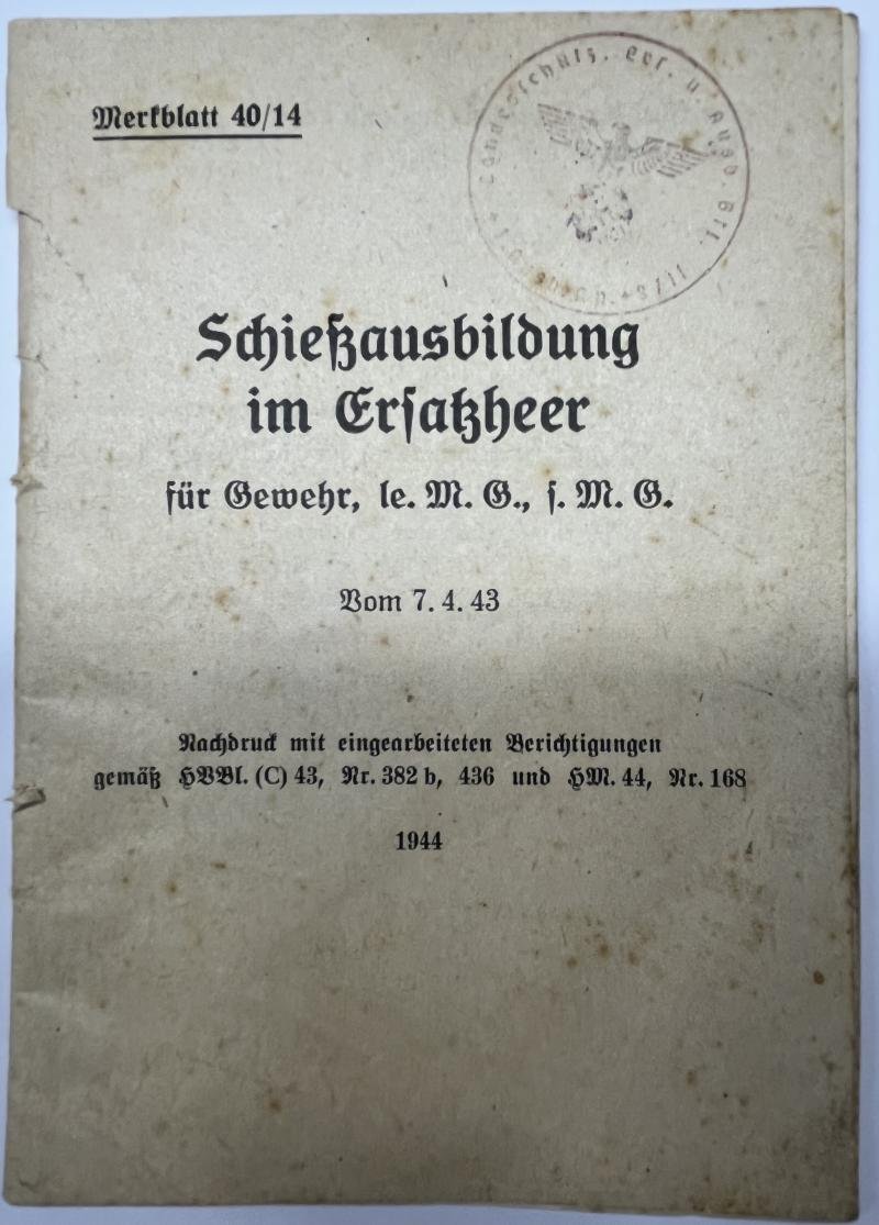 'Schiessausbildung im Ersatzheer' manual from 1944.Nice shooting training manual.