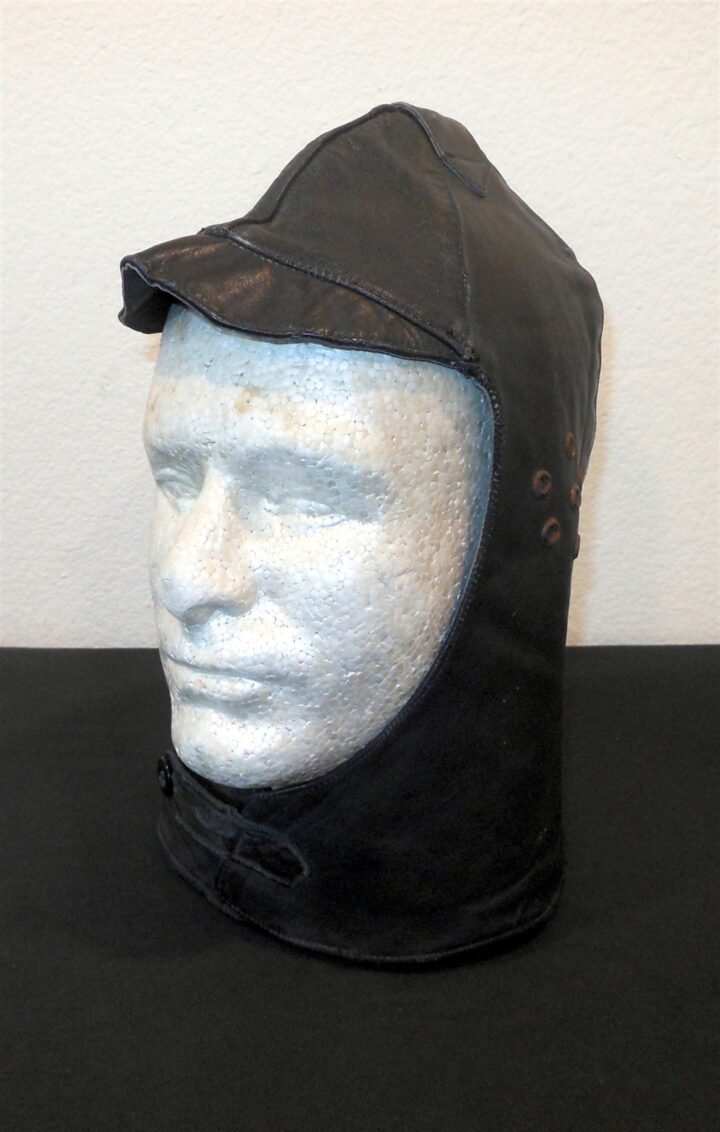 You are bidding on a SUPERB example of a 100% ORIGINAL WW2 German Kriegsmarine 'Kapuzenhaube' (Foul Weather Hood), as issued to naval and coastal artillery personnel! This late-war model was part of the foul-weather gear designed for shipboard use and protection against wind, rain, and sea spray. Worn aboard destroyers, U-boats, and other surface craft, as well as by shore-based artillery and port defense crews.During the early years of the war, the Kriegsmarine issued heavy, padded leather hoods as part of its foul-weather equipment. However, by 1943 shortages of leather and other materials led to the introduction of simplified, lightweight versions. These were made from black or dark brown leather; Erstaz Leather; or Rrubberized Cotton Fabric, with a lighter cotton or linen lining. They retained the same general shape as the early models, with a front visor, neck flap, and chin strap, but were more flexible and easier to produce. The late-war models were commonly marked with an RBN number in place of the earlier manufacturer stamps.Constructed of supple black leather (possibly Ersatz Leather) with a grey cotton interior lining, this Kreigsmarine Foul Weather cap is in AMAZING used condition! Representing the lighter late-war variant of the heavy, padded foul-weather hood. It features the distinctive reinforced front peak, twin button chin strap, and ventilation grommets at the sides. Late-war examples like this one often exhibit simplified venting and construction as material shortages increased toward the end of the conflict. The RBNr. and size markings remain clearly visible on the inside, indicating a production date of '1944', as well as a size '55'. Features light service wear, however, the leather is still VERY soft and pliable, with all stitching intact. A SCARCE late-war variation, PERFECT for any collection or display!