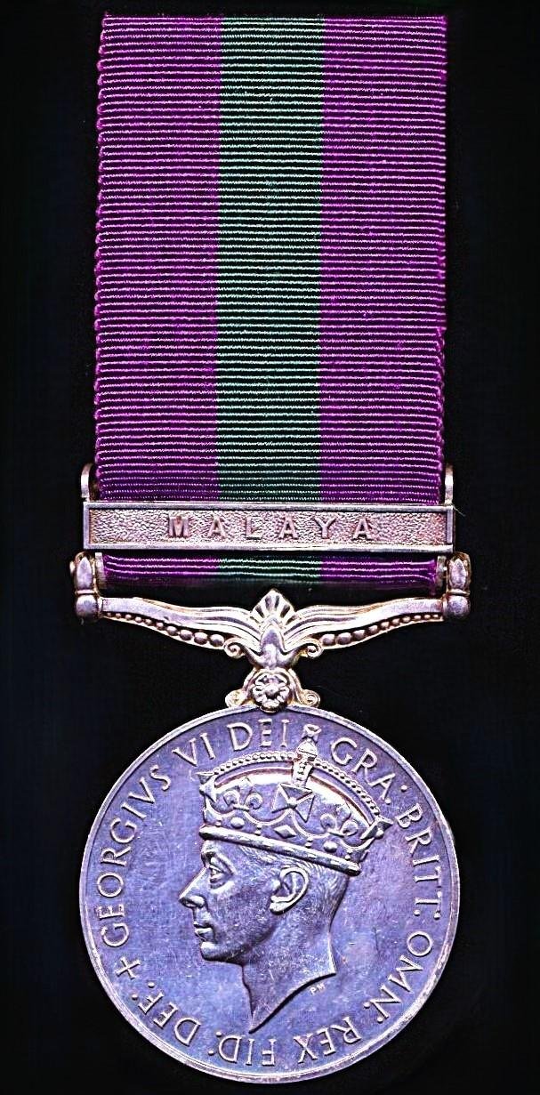 General Service Medal 1918. GVI 2nd issue with clasp 'Malaya' (4841 SC Hussein B Rasol F of M Pol)
