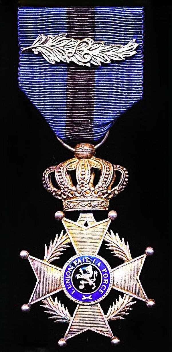 The insignia of the type issued 1908-52 (including Great War, Second World War and Korean War), with uni-lingual French obverse language legendThe silver War Services 'L' Palm (of the pattern instituted 1952 to denote Leopold III) indicates an award for services during the Korean WarNote: In practise Second World War & Korean War veterans chose to wear on their ribands whatever 'L III' or 'L' 'Palm' emblems they sourced or receivedThis type of insignia with uni-lingual obverse legend, was the type of Order that was widely awarded to Allied - including British and British Empire Officers - during both the Great War & Second World WarPer the pre-1951 Belgian 'Order of Precedence' the Order of Leopold II was the 5th ranked national order in the Belgian order of precedence. The decoration had been established on, 24 August 1900, by Leopold II as king of the Congo Free State and was in 1908, upon Congo being handed over to Belgium, incorporated into the Belgian awards systemThe insignia with only minor scuffsCondition: VF