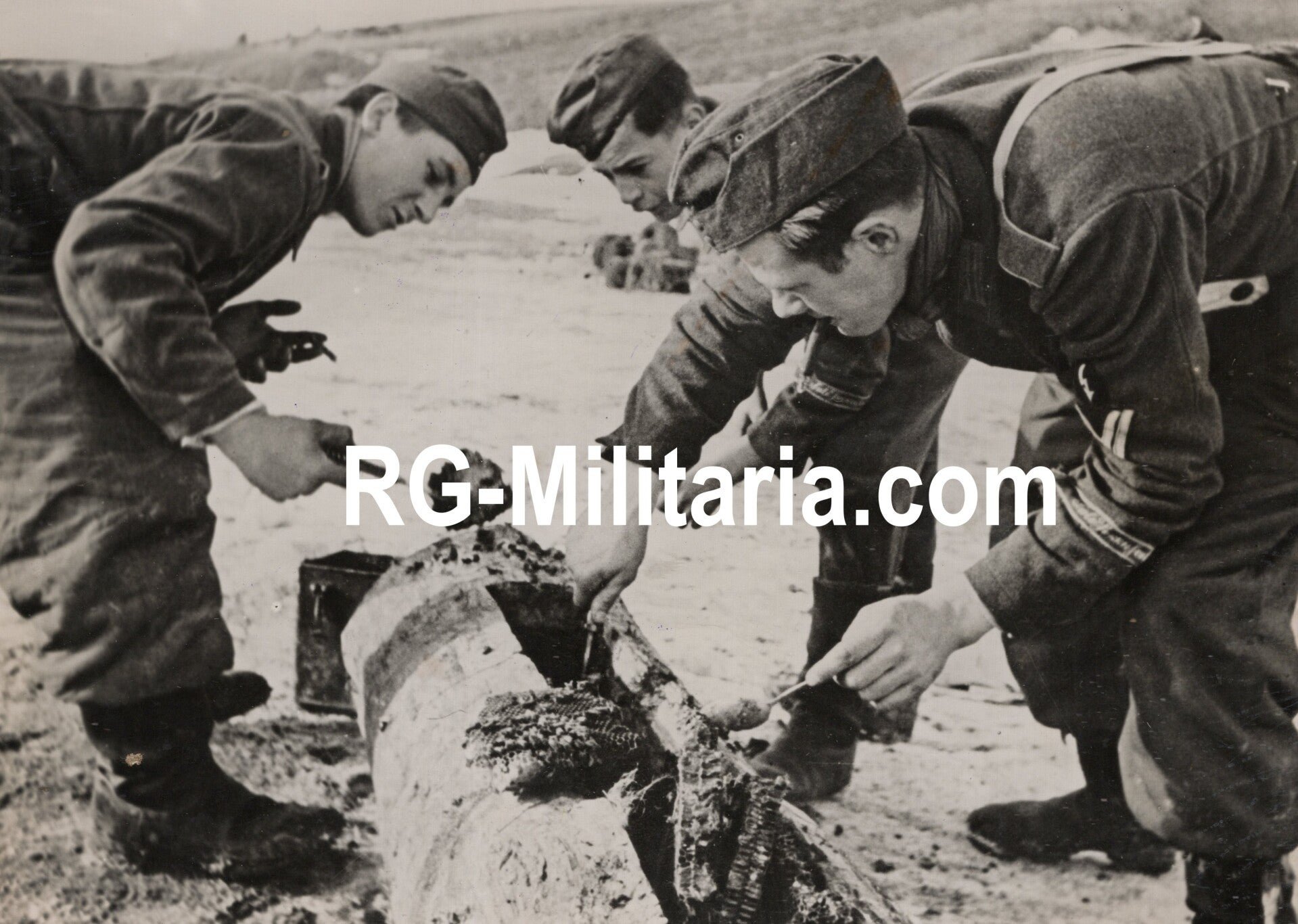 Original WW2 German Press Photo - Panzergrenadiere Division Grossdeutschland gathering honey (1944)Approximately 18 x 13 cmBy Kriegsberichter VorpahlOriginele Wo2 Duitse Persfoto - Panzergrenadier Division Grossdeutschland militairen verzamelen honing (1944)Ongeveer 18 x 13 cmDoor Kriegsberichter Vorpahl