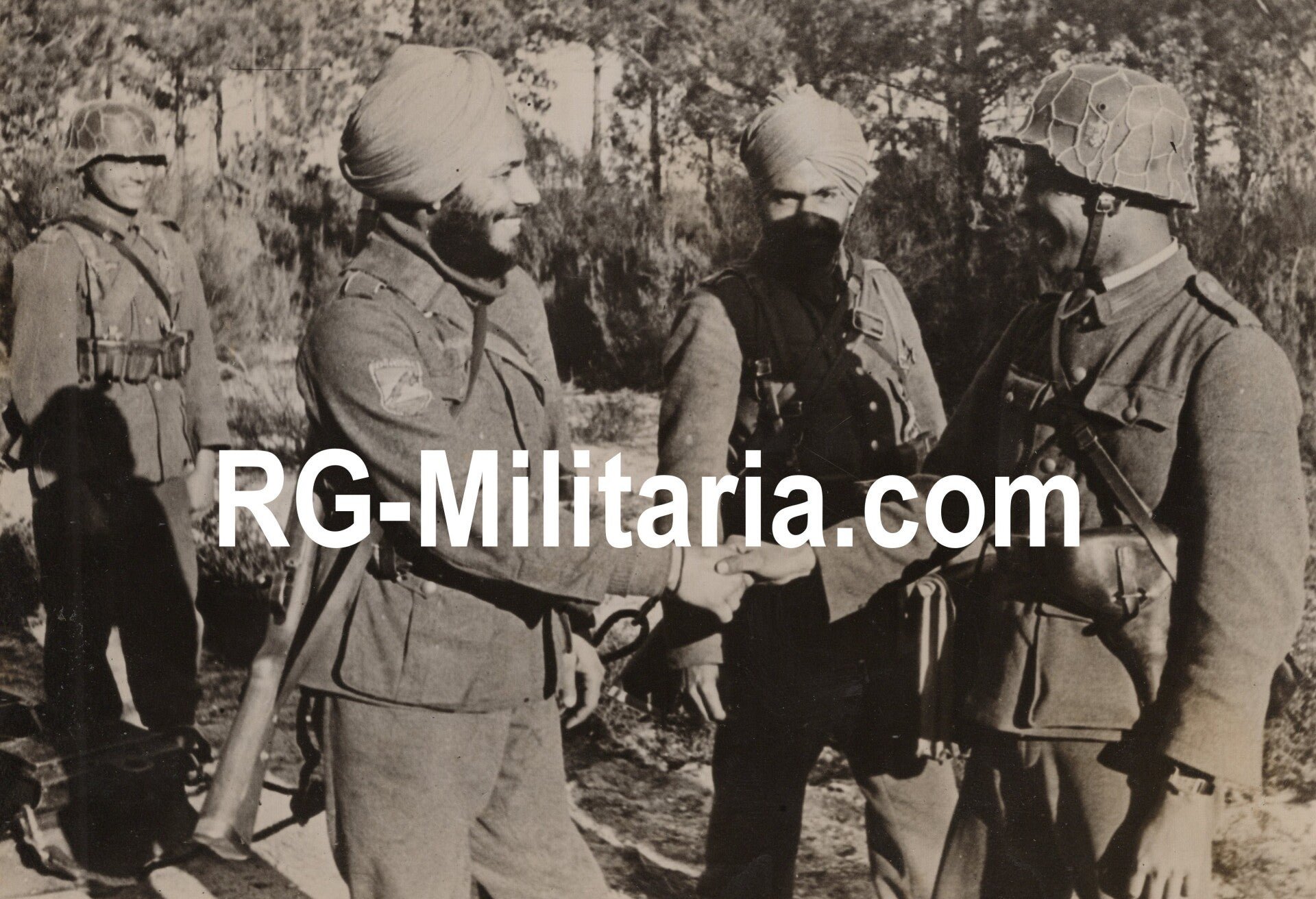 Original WW2 German Press Photo - Indian volunteers Legion Freies Indien, IR 950 training, Atlantic Wall, France (1944)Approximately 18 x 13 cmBy Kriegsberichter ReinhardtVery rare picture of the Indian volunteer legion Freies Indien (Azad Hind). These Indian troops were recruited against the British colonial empire, which controlled India at the time. This unit was stationed in the Netherlands (Zandvoort, Texel, and Oldebroek) and was moved to France in 1943 to have more units present at the Atlantikwall there. They were stationed in the Bordeaux region. This picture was made during this time. They go under the Legion Freies Indien, or the Tiger Legion, and also under Azad Hind Fauj.The label was put on with tape.Originele Wo2 Duitse Persfoto - Indiase vrijwilligers van het Legion Freies Indien, IR 950 training, Atlantikwall, Frankrijk (1944)Ongeveer 18 x 13 cmDoor Kriegsberichter ReinhardtZeer zeldzame foto van het Indiase vrijwilligerslegioen Freies Indien (Azad Hind). Deze Indiase troepen werden gerekruteerd tegen het Britse koloniale rijk, dat destijds India beheerste. Deze eenheid was gestationeerd in Nederland (Zandvoort, Texel en Oldebroek) en werd in 1943 naar Frankrijk verplaatst om meer eenheden bij de Atlantikwall te kunnen huisvesten. Ze waren gestationeerd in de regio Bordeaux. Deze foto is in die tijd gemaakt. Ze vallen onder het Legioen Freies Indien, oftewel het Tijgerlegioen, en ook onder Azad Hind Fauj.Het label is met tape erop gezet.