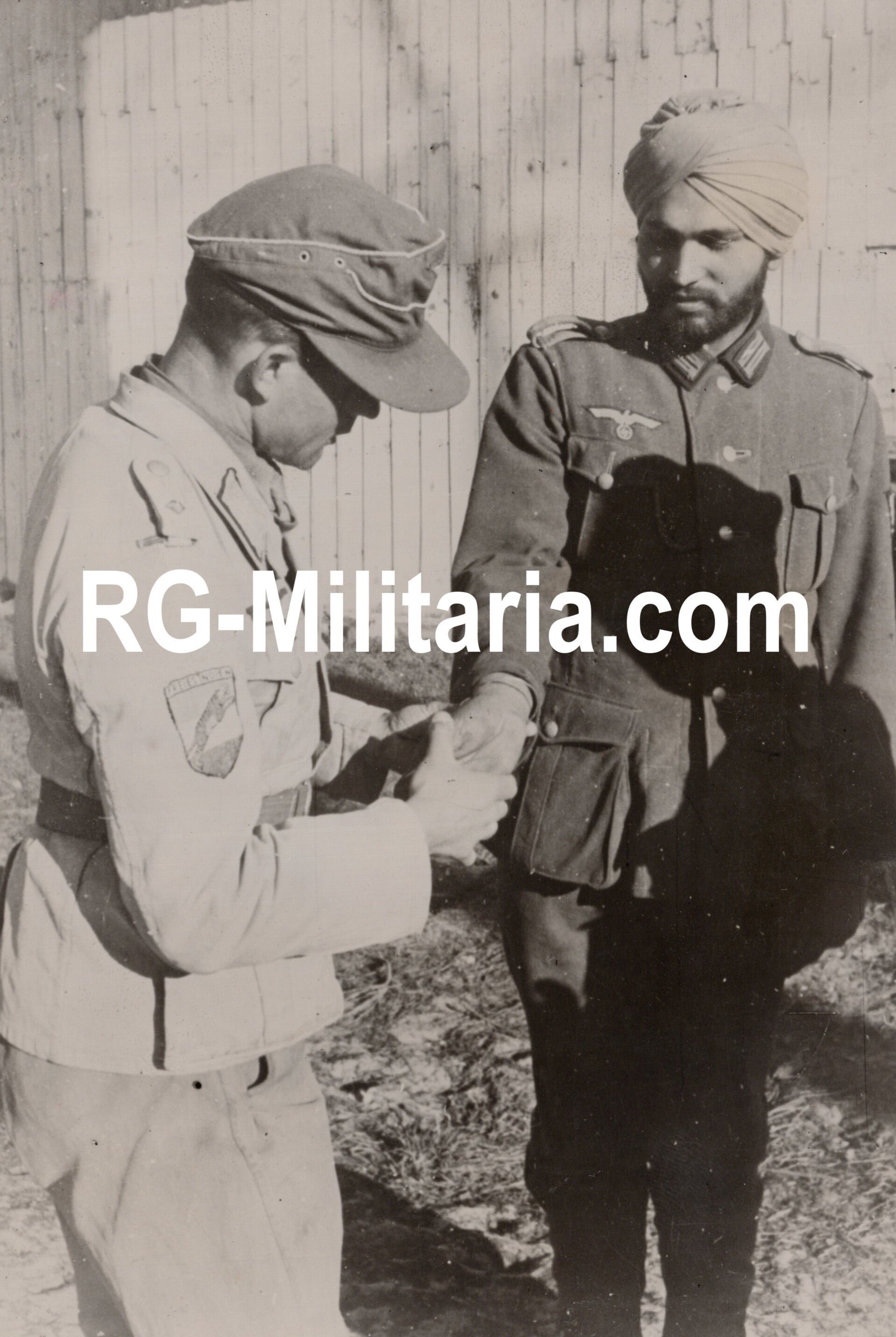 Original WW2 German Press Photo - Indian volunteers Legion Freies Indien, IR 950 training, Atlantic Wall, France (1944)Approximately 18 x 13 cmBy Kriegsberichter ReinhardtVery rare picture of the Indian volunteer legion Freies Indien (Azad Hind). These Indian troops were recruited against the British colonial empire, which controlled India at the time. This unit was stationed in the Netherlands (Zandvoort, Texel, and Oldebroek) and was moved to France in 1943 to have more units present at the Atlantikwall there. They were stationed in the Bordeaux region. This picture was made during this time. They go under the Legion Freies Indien, or the Tiger Legion, and also under Azad Hind Fauj.The label was put on with tape.Originele Wo2 Duitse Persfoto - Indiase vrijwilligers van het Legion Freies Indien, IR 950 training, Atlantikwall, Frankrijk (1944)Ongeveer 18 x 13 cmDoor Kriegsberichter ReinhardtZeer zeldzame foto van het Indiase vrijwilligerslegioen Freies Indien (Azad Hind). Deze Indiase troepen werden gerekruteerd tegen het Britse koloniale rijk, dat destijds India beheerste. Deze eenheid was gestationeerd in Nederland (Zandvoort, Texel en Oldebroek) en werd in 1943 naar Frankrijk verplaatst om meer eenheden bij de Atlantikwall te kunnen huisvesten. Ze waren gestationeerd in de regio Bordeaux. Deze foto is in die tijd gemaakt. Ze vallen onder het Legioen Freies Indien, oftewel het Tijgerlegioen, en ook onder Azad Hind Fauj.Het label is met tape erop gezet.