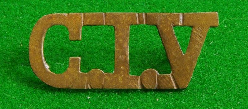 Scarce Boer War brass slouch hat / shoulder title, ' C.I.V.'
