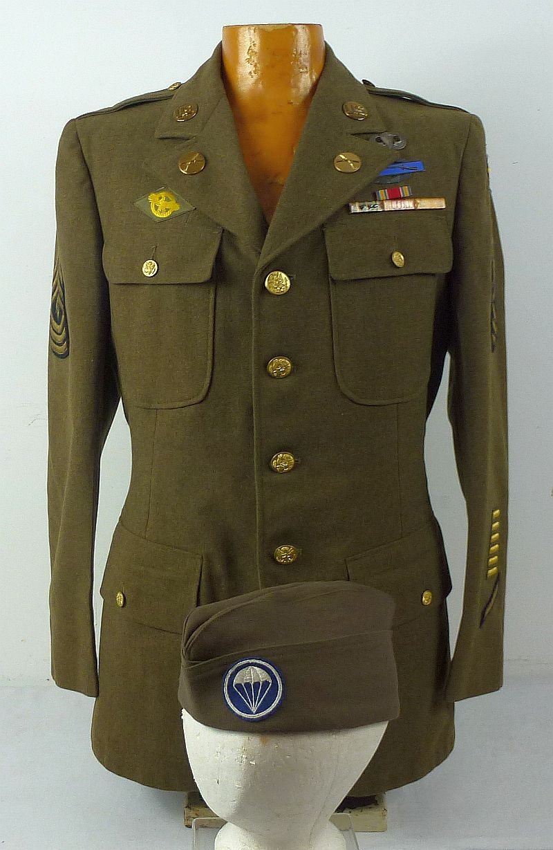 WWII U.S. Army 101st Airborne Division Infantry First Sergeant Tunic with Overseas Cap