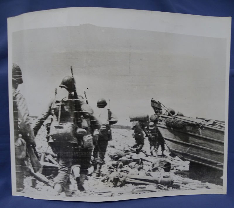 WWII Washington Bureau Photo Infantry Men on Coast of France 9 x 7-1/4″