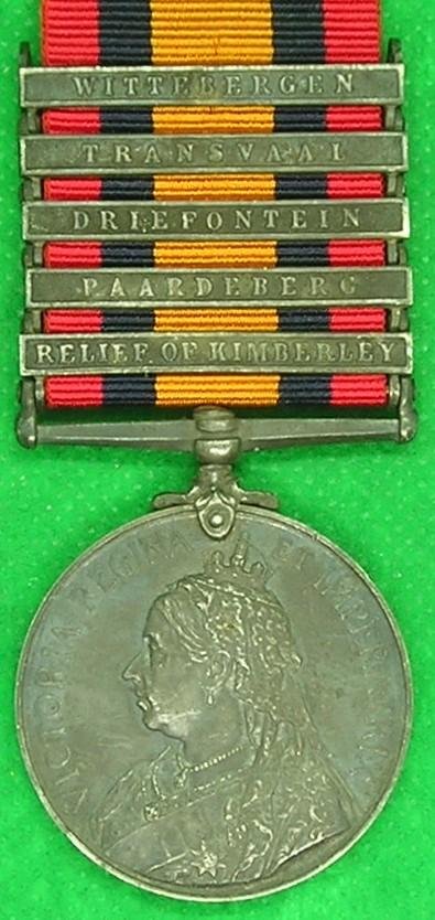 QSA 1899-1902 With clasps for Relief of Kimberley, Paardeberg, Driefontein, Transvaal, WitterbergenTo- 2274.TPR.H.SUMMERTON.ROBERTS.HORSEThe recipient was listed as missing during the battle of Sannas post 31-3-1900 but is later listed as having being released.NEF/GVF & Complete with medal roll details