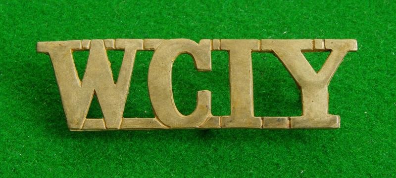 Scarce brass slouch hat badge with two loops and a stud fitting to keep it in position to the reverse. ' The letters, ' W C I Y ' {Approx 6 cms wide}