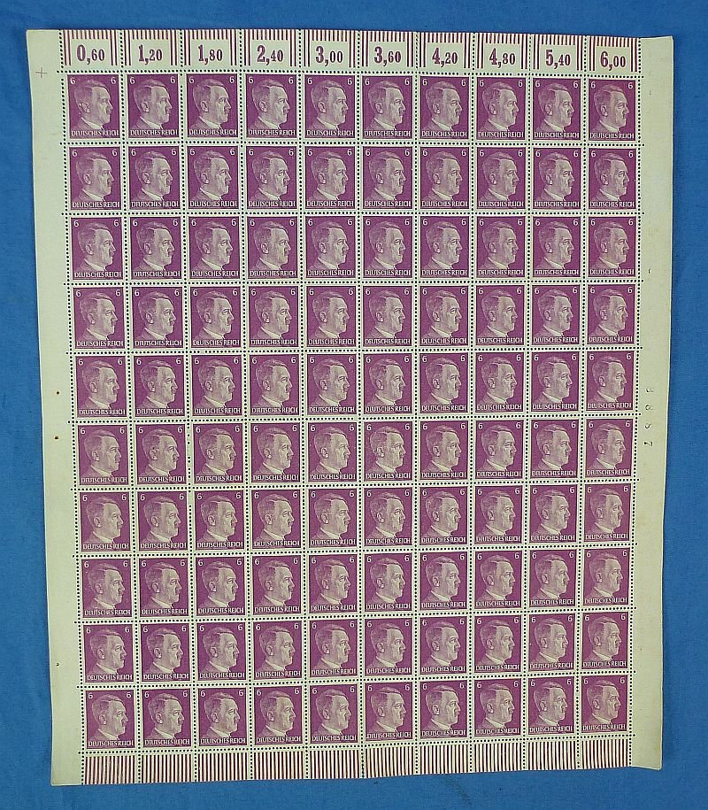 A Sheet of 100 Third Reich Adolf Hitler Stamps