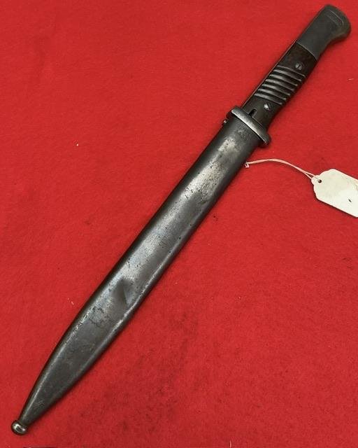S Code 174 matching number K98, 8364, Blade marked WKC and 27 dated, scabbard S/174 1936 dated but matching number.Blued blade in excellent condition, minor dent in scabbard, baker lite grips securely held, press stud in good working order.Age restricted item