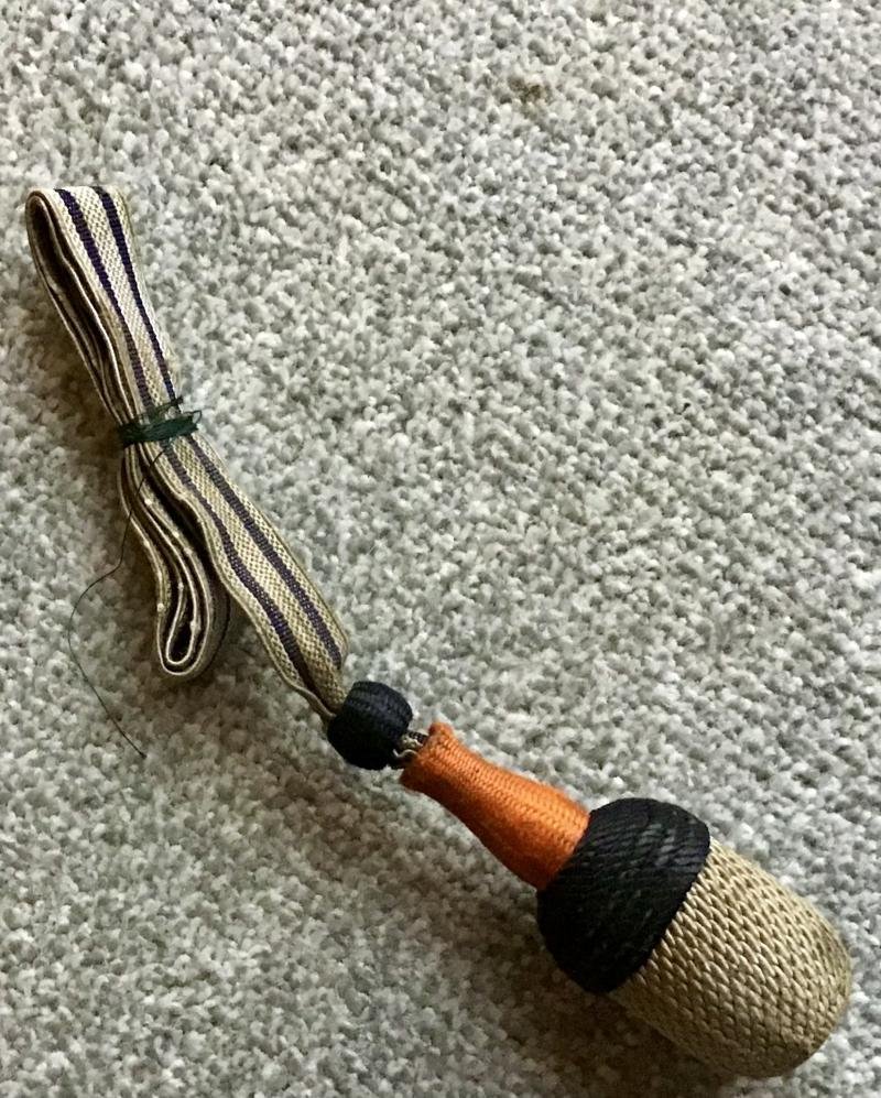 An original portepee for the TENO Hewer identified as 'stand by service enlisted' in perfect, worn condition, somewhat grubby from age. Silver strap with blue lines, dark blue slide and crown, orange stem. Silver acorn with a section of strap as infil to the base.Extremely rare portepee.