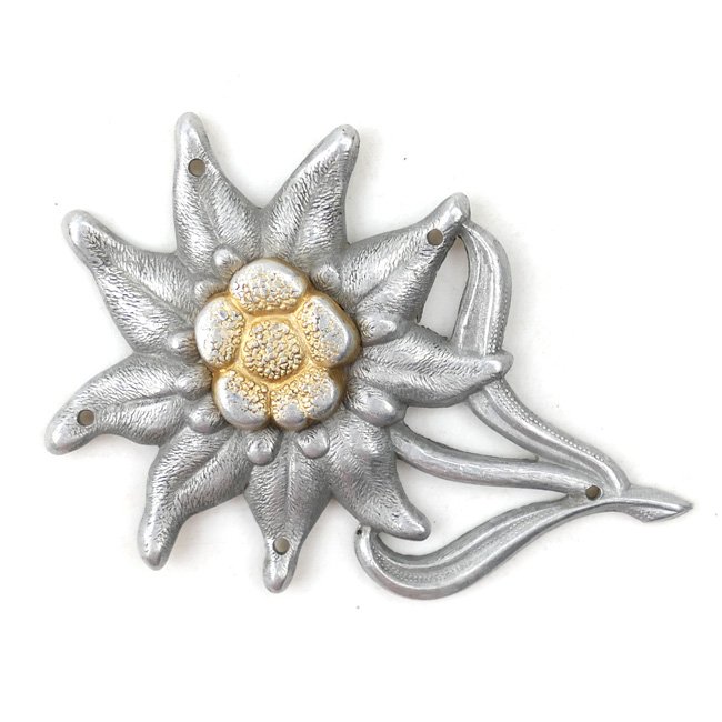 WH (Heer) Mountain Trooper's Cap Badge (Mützen Abzeichen für Gebirgsjäger). On 2 May 1939 the 'Oberkommando des Heeres' authorized wear of a distinctive 'Edelweiß' tradition badge for Mountain Troop personnel and the design of the badge was based on a pattern worn by German Alpine troops in World War 1. This is an early aluminum construction cap-badge for wear on the left side of the mountain cap. The badge is showing the famous 'Edelweiß' flower. The badge is not visible maker marked. Nice example in very good condition!