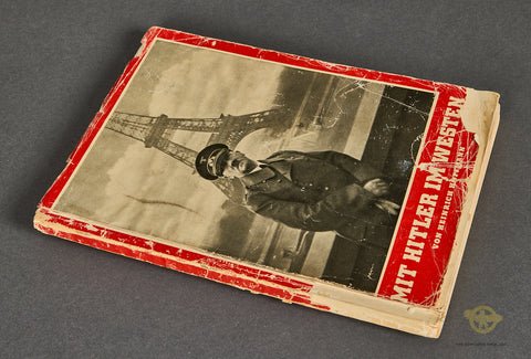 Mit Hitler Im Westen-This is a picture book by Hitler's personal photographer Heinrich Hoffmann. These photos document the German assault into Belgium, Holland and France in May/June of 1940. There are some great battle photos. Many are of the Führer in the west visiting wounded soldiers, etc. This is a softcover book that was printed by F. Bruckmann KG., in München with a copyright of 1940, for 'Zeitgeschichte-Verlag, Wilhelm Andermann, Berlin'. All photos are by von Heinrich Hoffmann (Hitlers personal photographer). There is an inscription written on the inside front page. There is moderate wear to the spine and cover.The dustcover does show moderate. Sound condition overall!