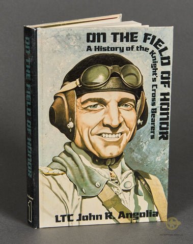 On the Field of Honor β A History of the Knight's Cross by John Angolia-This is Volume 1 of the 2-volume series. This is a first edition, printed in 1979. This provides brief texts and photos detailing more winners of the Knight's Cross (regardless of branch of service). It is in very good condition, with very minimal yellowing to the outer edge of the pages and minor edge, spine and corner wear. Great information resource on the winners of Germany's highest awards. Very hard to find and never will be reprinted. This book contains 287 pages that are very clean. This is in almost new condition.