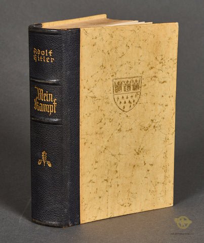 Mein Kampf (Library Copy-1937)-This is the library version of Hitler's autobiography. This example is in excellent condition. All 705+ pages are intact. First written in 1925, and published in 1927, this edition was printed 1937. Great photo of Adolf in the front. This is very clean with a tight binding. The hardcovers show almost no wear at all. You wonder how these books survive for almost 100 years and remain looking this good.Excellent overall.