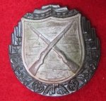 Original era manufacture. A well made pocket badge of darkened bronze with a silver shield at center. Czech Lion proof mark on the reverse.