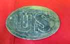 Original era manufacture. Standard Federal pattern lead filled brass oval with the letters US on its obverse. Shows typical age and wear for being a field recovered example.