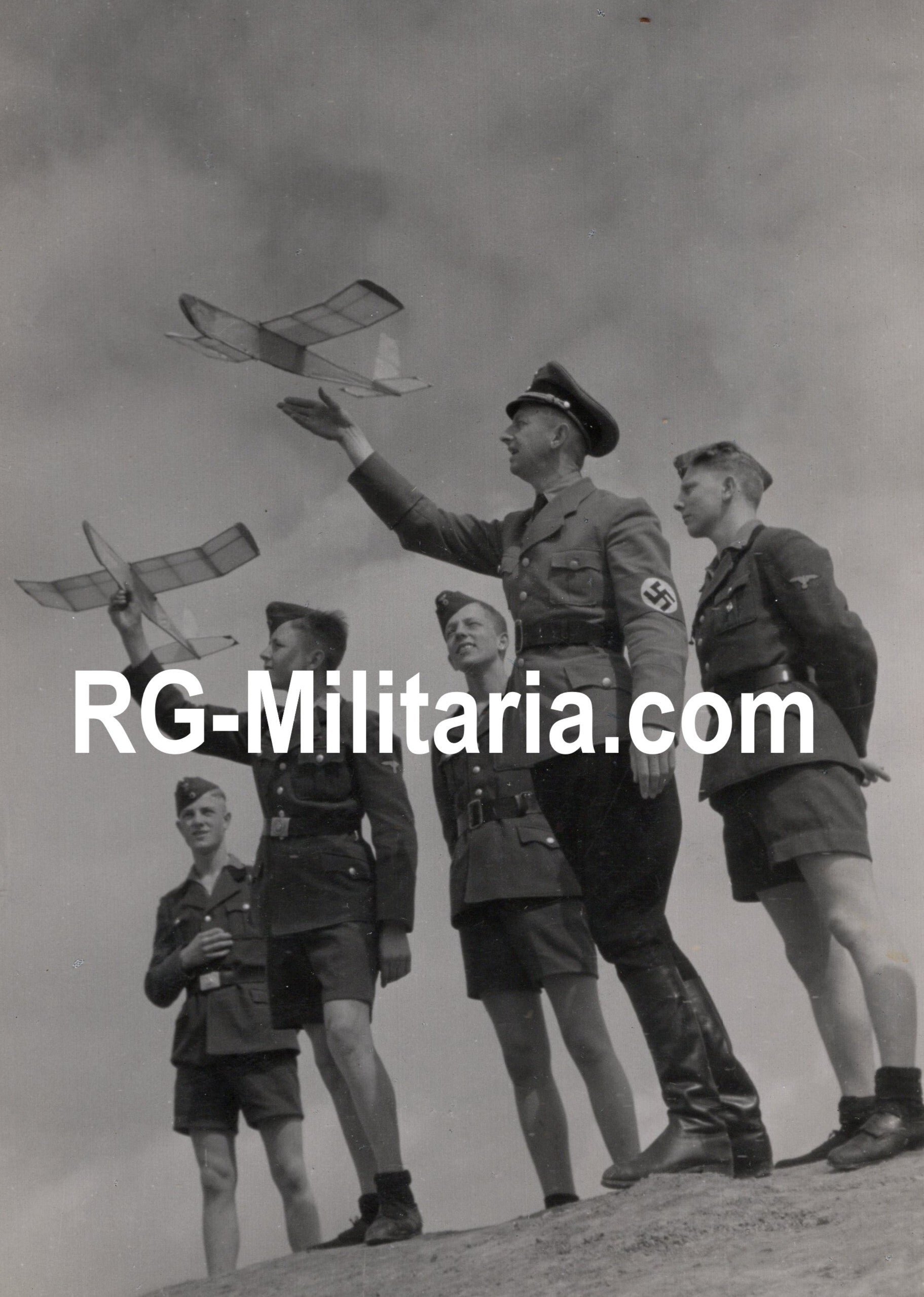 Original WW2 Dutch Waffen SS Press Photo - Reichsschule Valkenburg glider plane toy (1943)Approximately 8 x 11 cmBy Victor Meeussen, Volksche Werkgemeenshap WageningenThe Reichsschule Valkenburg was a school for Dutch and German children, led by the SS to make heavily indoctrinated national socialists out of the children. The goal was to make these children the new ''model Nazis'' that would later join the Waffen SS when they were old enough. This group went to The Hague to ''perform'' to recruit more members. The children all wear SS greatcoats with Reichsschule cufftitles.This is an image from a series made during a visit by SS Gruppenführer Hanns Albin Rauter, along with SS Obergruppenführer A. Heissmeyer, SS Brigadeführer Dr. Friedrich Wimmer, SS Brigadeführer Jungclaus, and others on May 20, 1943. The group visited the Reichsschule in Valkenburg (for boys) and in Heythuysen (for girls).This picture was found by a US war photographer and taken back to the USA. The picture is stamped ''Passed for personal use only, not for publication, Theater Censor E.T.O. U.S.A.''Originele Wo2 Nederlandse Waffen SS Persfoto - Reichsschule Valkenburg zweefvliegtuig speelgoed (1943)Ongeveer 8 x 11 cmDoor Victor Meeussen, Volksche Werkgemeenshap WageningenDe Reichsschule Valkenburg was een school speciaal voorNederlandse en Duitse kinderen om ze door de SS klaar te stomen om ideologisch zwaar geïndoctrineerde nationaal socialisten te worden. Het was de bedoeling dat deze kinderen modelnazi's werden die onder andere bij de Waffen SS gingen wanneer zij volwassen werden. De groep ging onder andere naar Den Haag om ''op te treden'' om zodoende meer leden te werven. De kinderen in deze foto dragen allemaal SS mantels met armbanden van de Reichsschule.Dit is een foto uit een serie die werd gemaakt tijdens een bezoek van SS Gruppenführer Hanns Albin Rauter, samen met SS Obergruppenführer A. Heissmeyer, SS Brigadeführer Dr. Friedrich Wimmer, SS Brigadeführer Jungclaus en anderen op 20 mei 1943. De groep bezocht de Reichsschule in Valkenburg (voor jongens) en in Heythuysen (voor meisjes).Deze foto is gevonden door een Amerikaanse oorlogsfotograaf en meegenomen naar de Verenigde Staten. De foto is voorzien van het stempel 'Alleen voor persoonlijk gebruik, niet voor publicatie, Theatercensor E.T.O. U.S.A.'