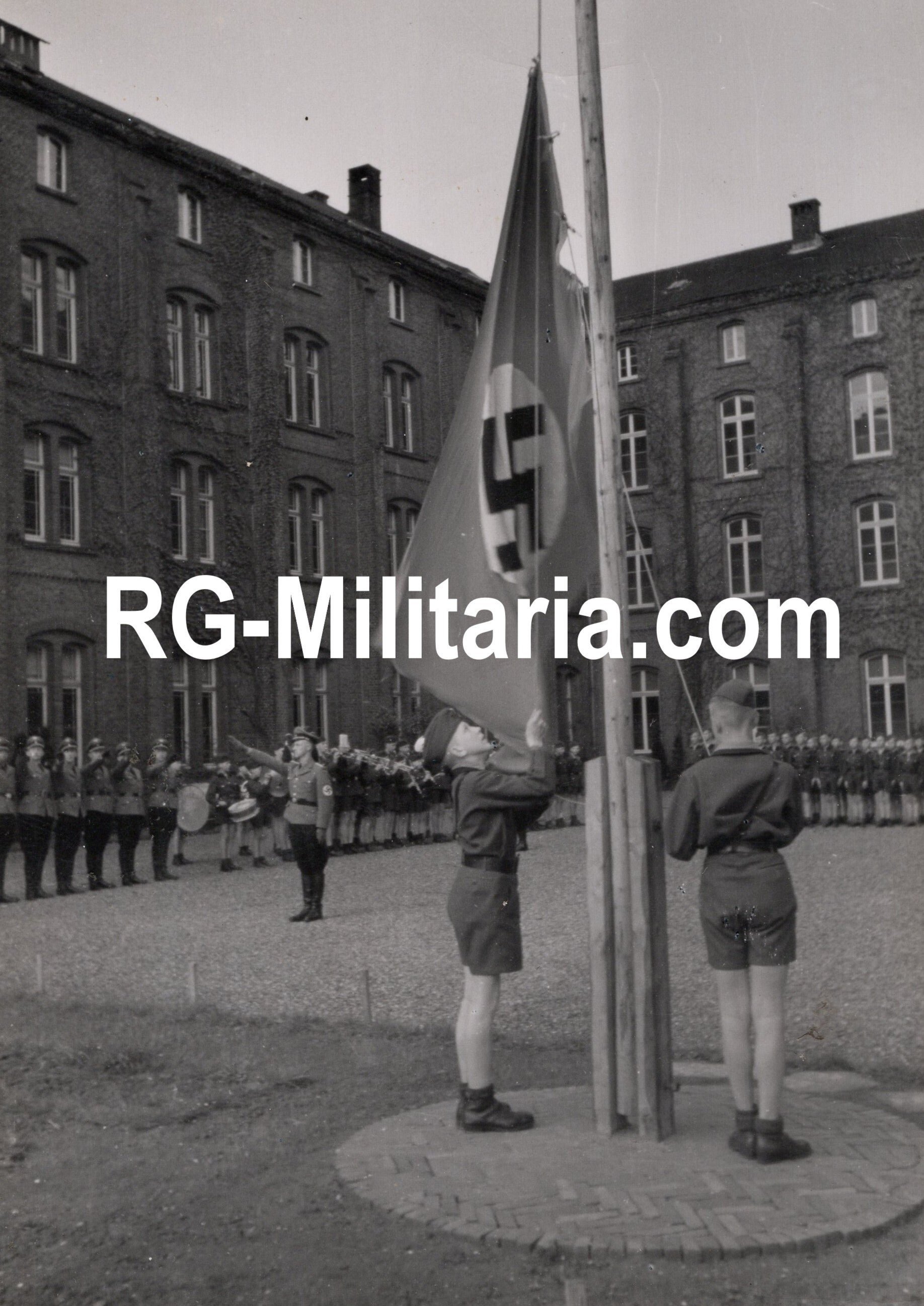 Original WW2 Dutch Waffen SS Press Photo - Reichsschule Valkenburg Flag ceremony (1943)Approximately 8 x 11 cmBy Victor Meeussen, Volksche Werkgemeenshap WageningenThe Reichsschule Valkenburg was a school for Dutch and German children, led by the SS to make heavily indoctrinated national socialists out of the children. The goal was to make these children the new ''model Nazis'' that would later join the Waffen SS when they were old enough. This group went to The Hague to ''perform'' to recruit more members. The children all wear SS greatcoats with Reichsschule cufftitles.This is an image from a series made during a visit by SS Gruppenführer Hanns Albin Rauter, along with SS Obergruppenführer A. Heissmeyer, SS Brigadeführer Dr. Friedrich Wimmer, SS Brigadeführer Jungclaus, and others on May 20, 1943. The group visited the Reichsschule in Valkenburg (for boys) and in Heythuysen (for girls).This picture was found by a US war photographer and taken back to the USA. The picture is stamped ''Passed for personal use only, not for publication, Theater Censor E.T.O. U.S.A.''Originele Wo2 Nederlandse Waffen SS Persfoto - Reichsschule Valkenburg vlaggen ceremonie (1943)Ongeveer 8 x 11 cmDoor Victor Meeussen, Volksche Werkgemeenshap WageningenDe Reichsschule Valkenburg was een school speciaal voorNederlandse en Duitse kinderen om ze door de SS klaar te stomen om ideologisch zwaar geïndoctrineerde nationaal socialisten te worden. Het was de bedoeling dat deze kinderen modelnazi's werden die onder andere bij de Waffen SS gingen wanneer zij volwassen werden. De groep ging onder andere naar Den Haag om ''op te treden'' om zodoende meer leden te werven. De kinderen in deze foto dragen allemaal SS mantels met armbanden van de Reichsschule.Dit is een foto uit een serie die werd gemaakt tijdens een bezoek van SS Gruppenführer Hanns Albin Rauter, samen met SS Obergruppenführer A. Heissmeyer, SS Brigadeführer Dr. Friedrich Wimmer, SS Brigadeführer Jungclaus en anderen op 20 mei 1943. De groep bezocht de Reichsschule in Valkenburg (voor jongens) en in Heythuysen (voor meisjes).Deze foto is gevonden door een Amerikaanse oorlogsfotograaf en meegenomen naar de Verenigde Staten. De foto is voorzien van het stempel 'Alleen voor persoonlijk gebruik, niet voor publicatie, Theatercensor E.T.O. U.S.A.'