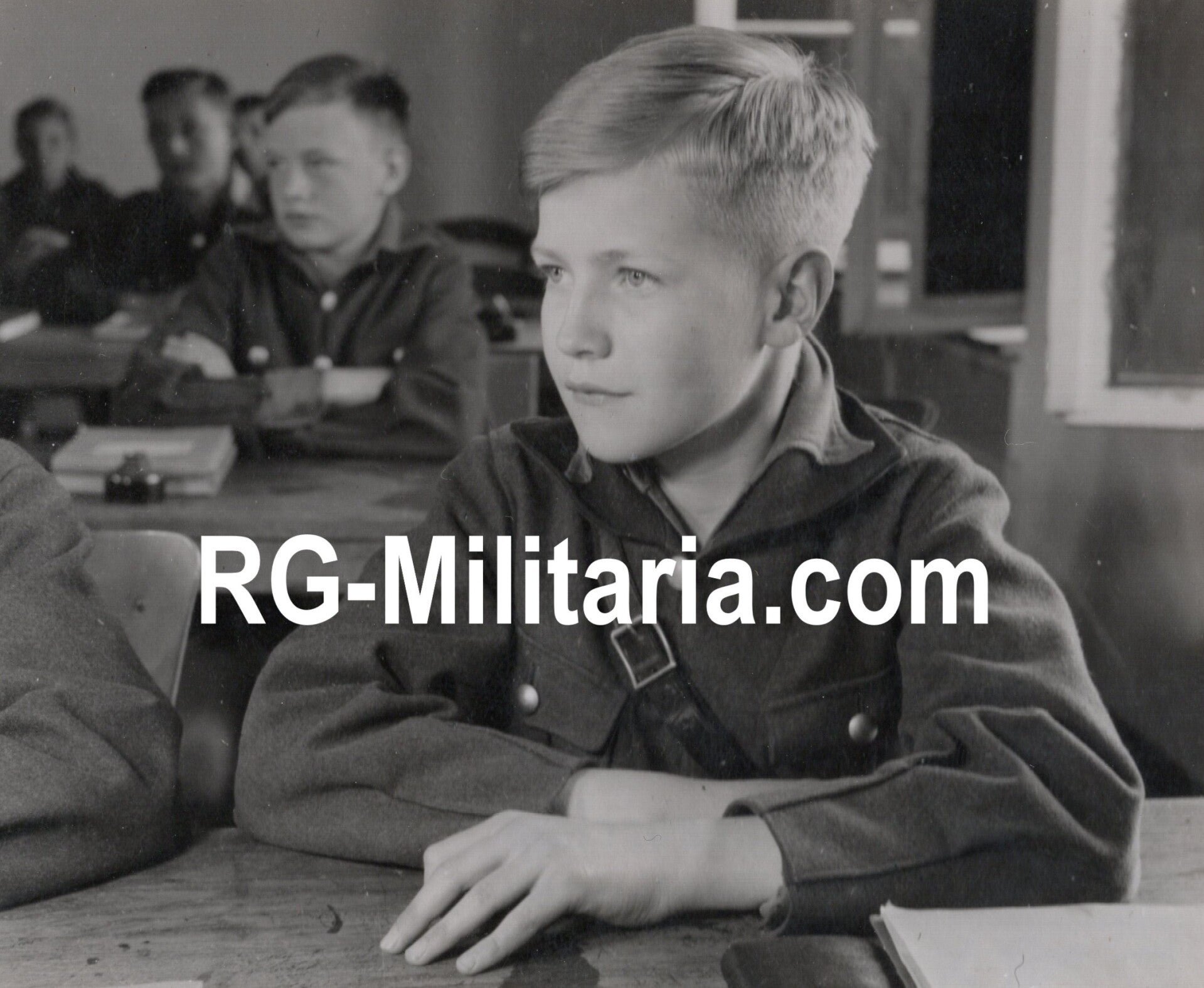 Original WW2 Dutch Waffen SS Press Photo - Pupil from the Reichsschule Valkenburg during a lecture (1943)Approximately 8 x 10 cmBy Victor Meeussen, Volksche Werkgemeenshap WageningenThe Reichsschule Valkenburg was a school for Dutch and German children, led by the SS to make heavily indoctrinated national socialists out of the children. The goal was to make these children the new ''model Nazis'' that would later join the Waffen SS when they were old enough. This group went to The Hague to ''perform'' to recruit more members. The children all wear SS greatcoats with Reichsschule cufftitles.This is an image from a series made during a visit by SS Gruppenführer Hanns Albin Rauter, along with SS Obergruppenführer A. Heissmeyer, SS Brigadeführer Dr. Friedrich Wimmer, SS Brigadeführer Jungclaus, and others on May 20, 1943. The group visited the Reichsschule in Valkenburg (for boys) and in Heythuysen (for girls).This picture was found by a US war photographer and taken back to the USA. The picture is stamped ''Passed for personal use only, not for publication, Theater Censor E.T.O. U.S.A.''Originele Wo2 Nederlandse Waffen SS Persfoto - Leerling van de SS Reichsschule Valkenburg tijdens een les (1943)Ongeveer 8 x 10 cmDoor Victor Meeussen, Volksche Werkgemeenshap WageningenDe Reichsschule Valkenburg was een school speciaal voor Nederlandse en Duitse kinderen om ze door de SS klaar te stomen om ideologisch zwaar geïndoctrineerde nationaal socialisten te worden. Het was de bedoeling dat deze kinderen modelnazi's werden die onder andere bij de Waffen SS gingen wanneer zij volwassen werden. De groep ging onder andere naar Den Haag om ''op te treden'' om zodoende meer leden te werven. De kinderen in deze foto dragen allemaal SS mantels met armbanden van de Reichsschule.Dit is een foto uit een serie die werd gemaakt tijdens een bezoek van SS Gruppenführer Hanns Albin Rauter, samen met SS Obergruppenführer A. Heissmeyer, SS Brigadeführer Dr. Friedrich Wimmer, SS Brigadeführer Jungclaus en anderen op 20 mei 1943. De groep bezocht de Reichsschule in Valkenburg (voor jongens) en in Heythuysen (voor meisjes).Deze foto is gevonden door een Amerikaanse oorlogsfotograaf en meegenomen naar de Verenigde Staten. De foto is voorzien van het stempel 'Alleen voor persoonlijk gebruik, niet voor publicatie, Theatercensor E.T.O. U.S.A.'