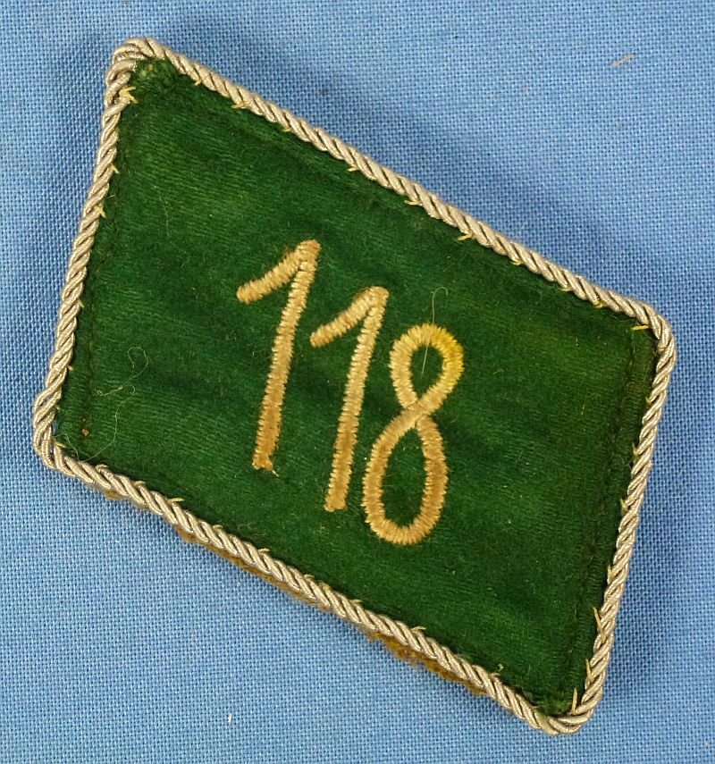An emerald green tab with silver piping for Group Sachsen. Very good condition, with an interesting brown fabric backing.