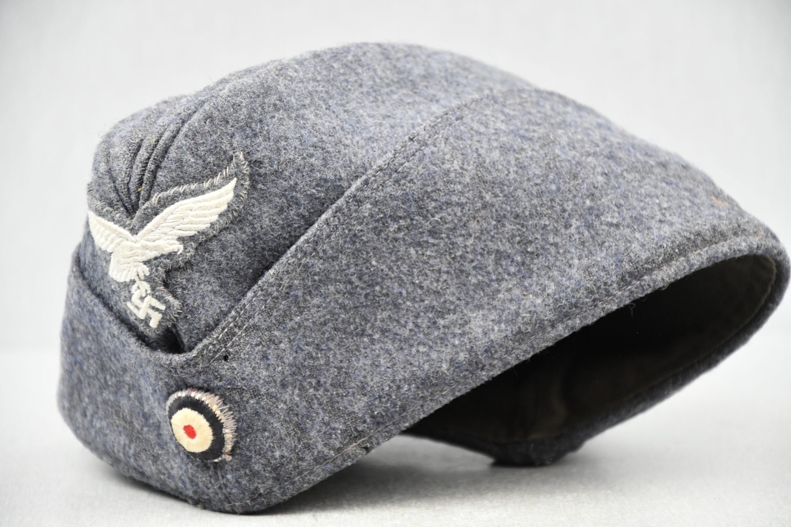 Standard wool Luftwaffe overseas cap in minimal worn condition. Period applied national insignia up front. Maker marked by H. Schade, Kassel, size marked 56 and dated 1921. A very nice hat with nearly no nap wear to the wool.