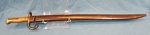Original period manufacture. Very clean postFranco Prussian War era Chassepot bayonet, mismatched serial numbers blade to scabbard. The blade isclean in factory polish with scattered spotting and staining from age. Mellow brass patina to the grip, nice blue finish to the steel scabbard with a few small surface dents.