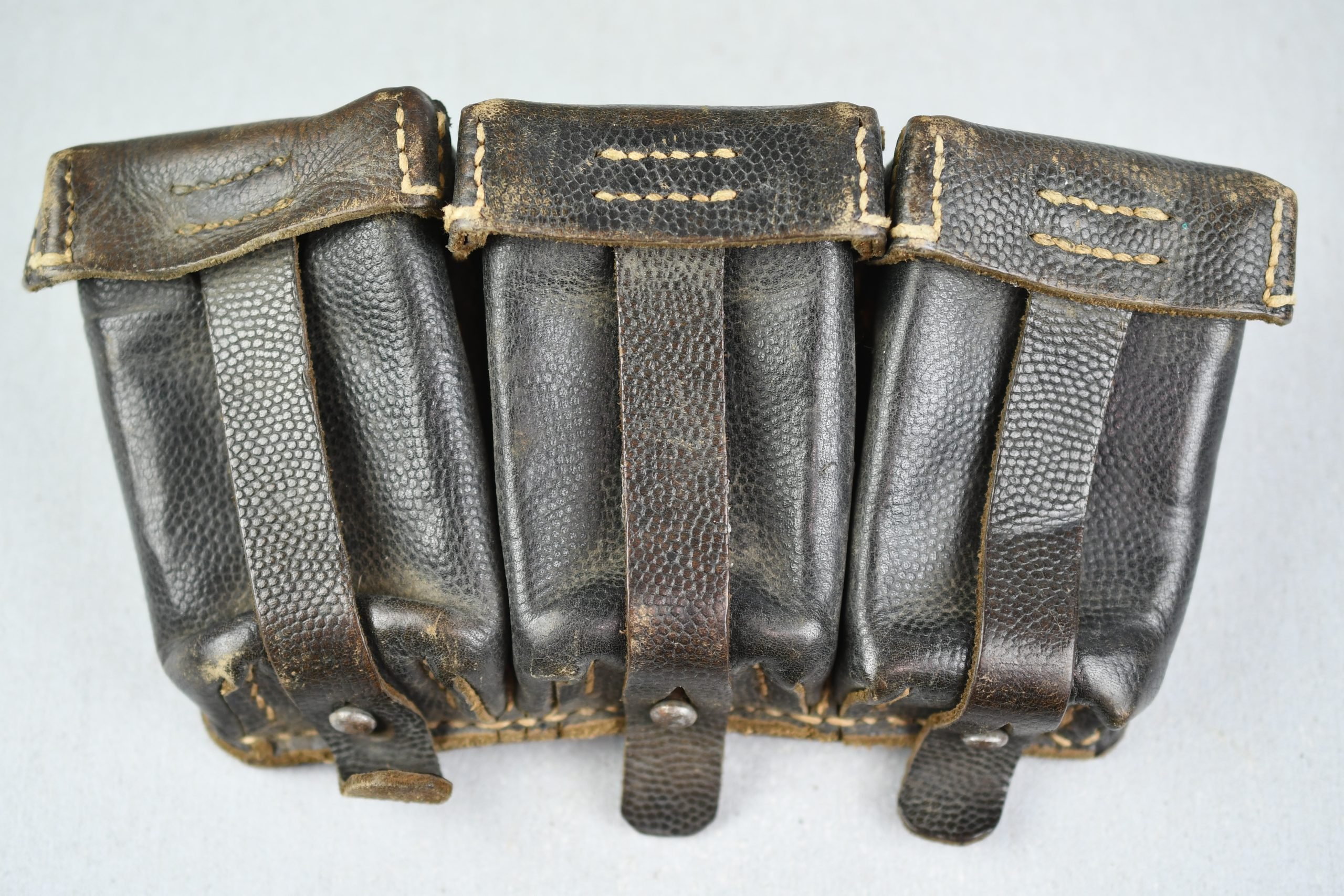Honest and light worn Wehrmacht/SS K98 ammo pouch in good condition. Complete with spacers intact. Maker marked with RBNr. 0/0490/0026, Ca. 1943