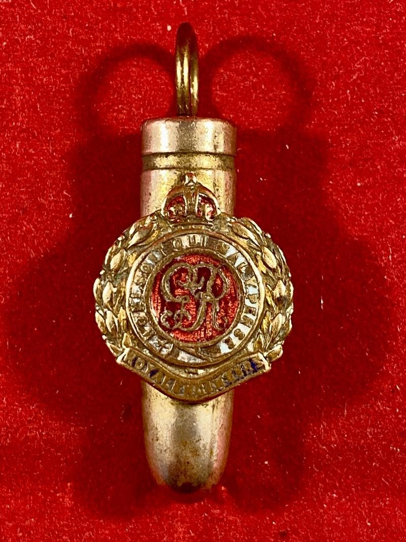 Here on offer is a WW1 British .303 sweetheart 'Bullet' pendant, fitted with a miniature gilt brass and enamel Royal Engineers badge.The bullet with a rounded tip, looks to be from a WW1 period British .303 Mk VI ball round.Mounted on the front is a finely detailed miniature Royal Engineers GvR badge/crest, made from gilt brass and enamel, with a King's crown. The red enamel seems to be all in place but areas of the light blue and dark blue enamel is now missing.The top of the bullet is fitted with a brass ring, allowing it to be worn as a pendant on a chain by a soldier's sweetheart.The bullet measures 1.7' (4.4cm) long, including the ring. The R.E. badge is 0.8' (2cm) wide and the pendant weighs 15.5g.Please see my pictures for the details of the condition, which complement this description.Please see my TERMS OF BUSINESS regarding Deliver Charges and Insurance regarding additional insurance cover, should you require it, BEFORE the item is dispatched.The responsibility lies with the customer to check with your Customs restrictions that this item can be imported into your country.