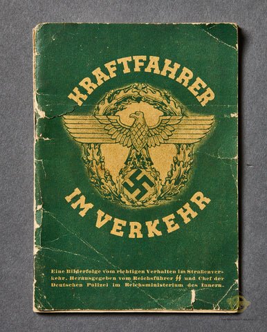 Third Reich 'Kraftfahrer im Verkehr' Booklet-This booklet measures approximately 4' by 6'. The covers are split and separated but all pages are present. The book deals with traffic laws and is meant for drivers. It is 32 pages long. Very interesting!