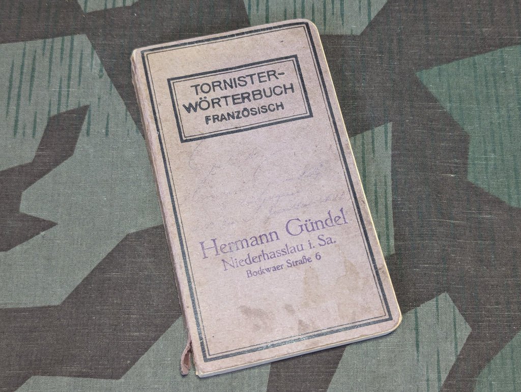 Decent original WWI era German tornisterworterbuch military pocket dictionary / phrasebook for French. It is in OK condition with a little wear and minor damage on the spine. It does appear to be named to a gefreiter.