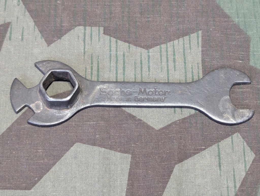 Sachs-Motor motorcycle spanner wrench. Made in Germany. Overall quite good condition. There is hardly any rust. Probably for a small motorcycle.