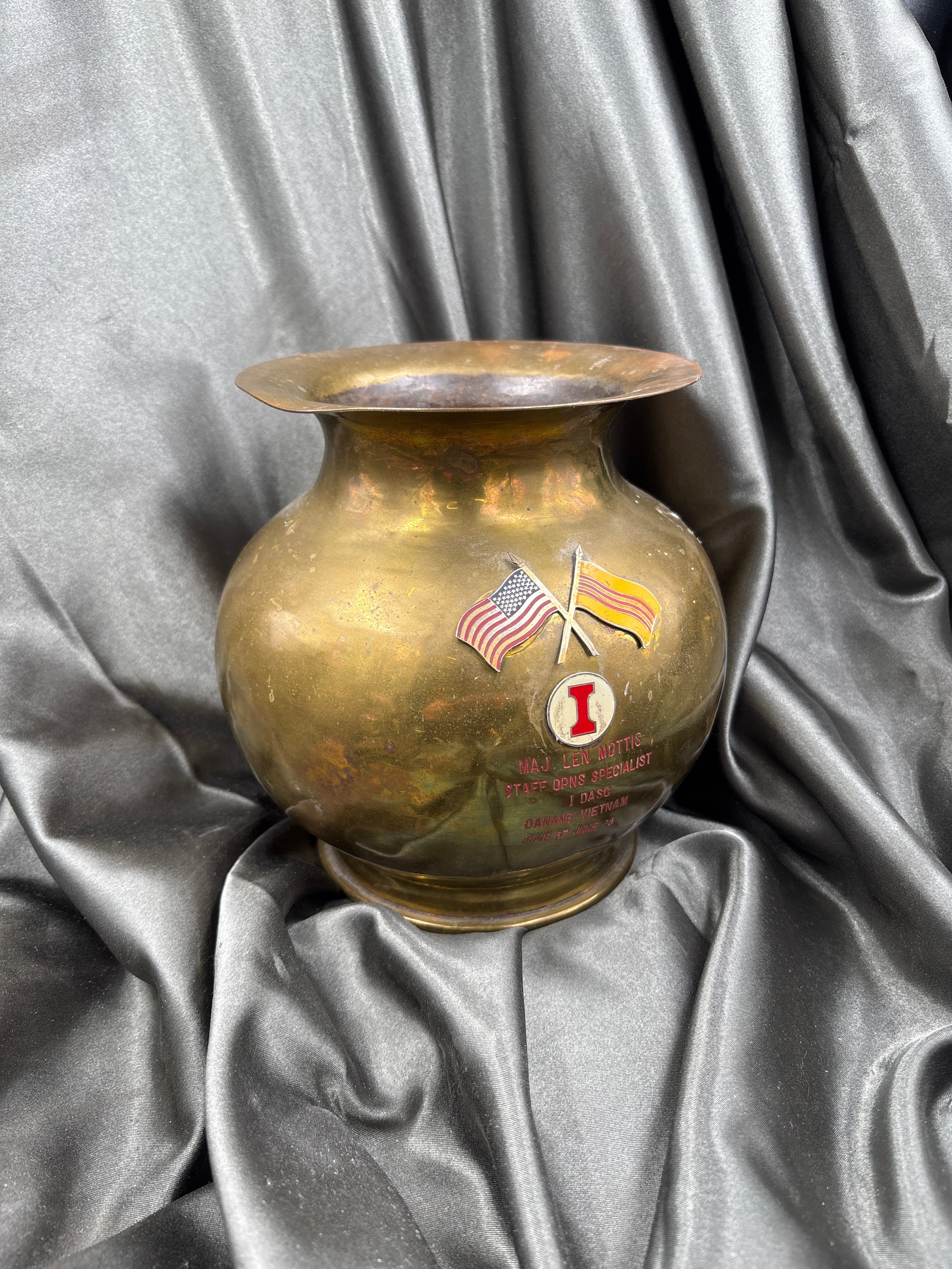 VIETNAM WAR ERA MAJOR DEDICATION TRENCH ART VASE