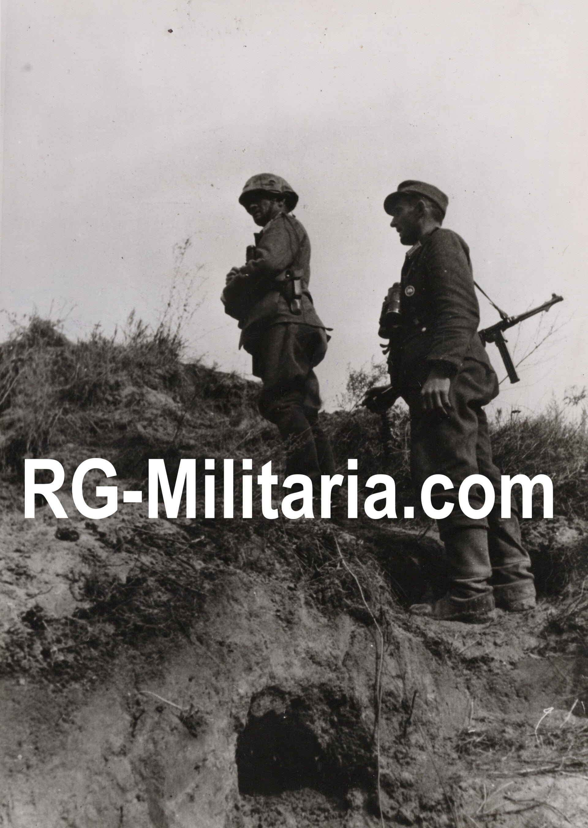 Original WW2 German Press Photo - Commander watching the front line, Eastern Front (1942)Approximately 18 x 13 cmBy Kriegsberichter VorpahlMp 40 MP40Originele Wo2 Duitse Persfoto - Kommandant bekijkt het front, Oostfront (1942)Ongeveer 18 x 13 cmDoor Kriegsberichter Vorpahl
