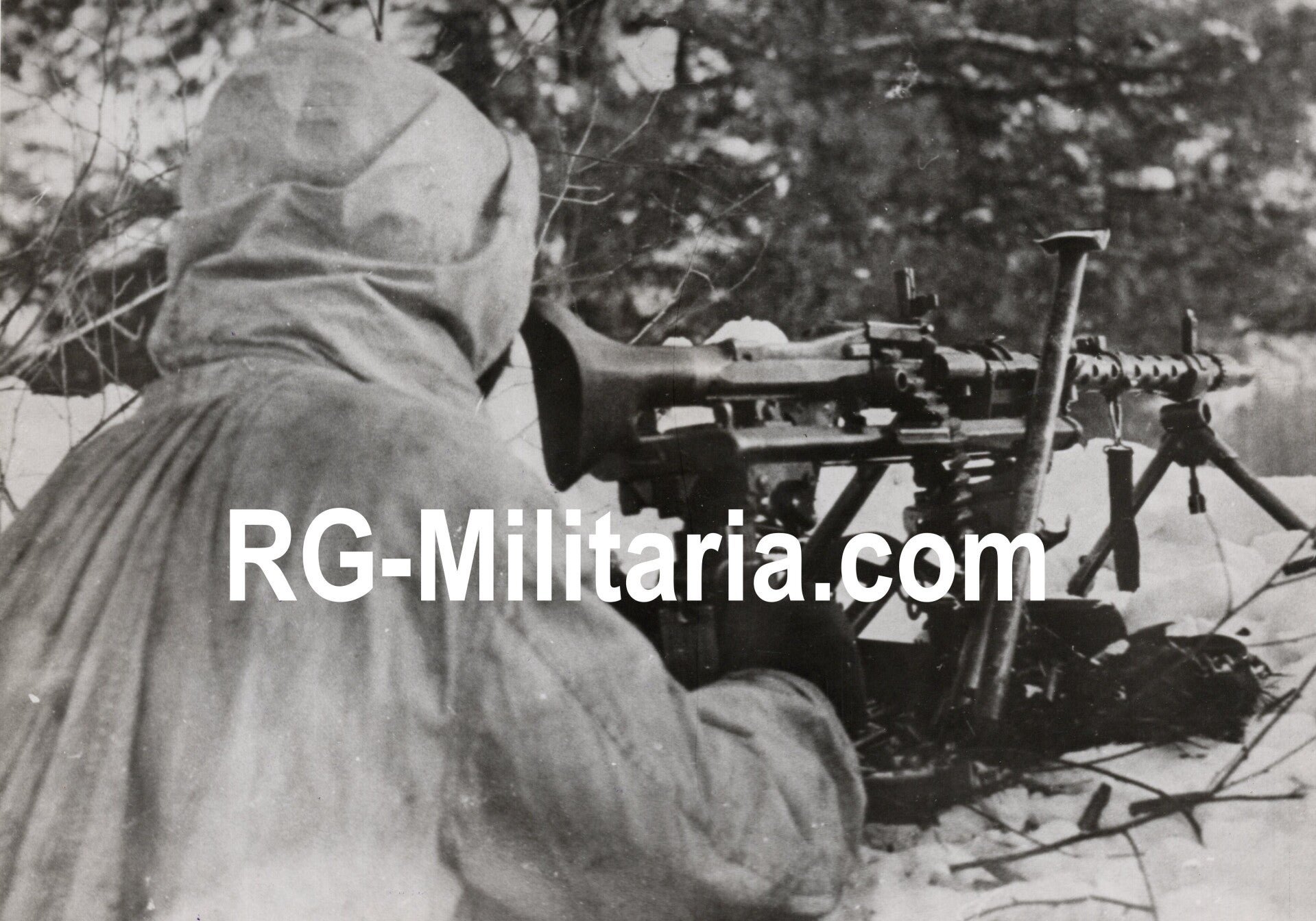 Original WW2 German Press Photo - Snow Camouflaged soldier with MG 34 machine gun, Eastern Front