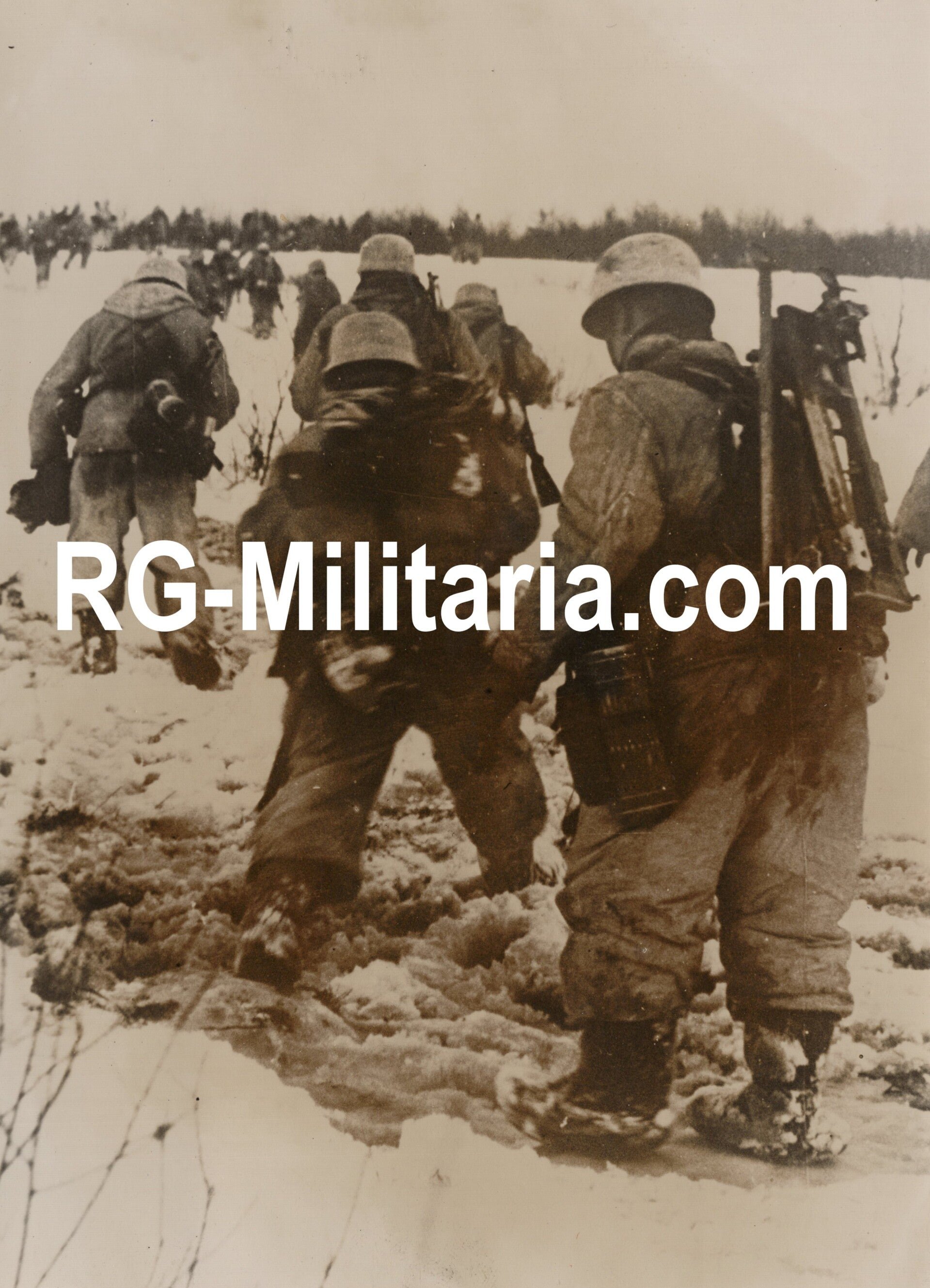 Original WW2 German Press Photo - German snow camouflaged soldiers at Witebsk, Eastern Front (1944)
