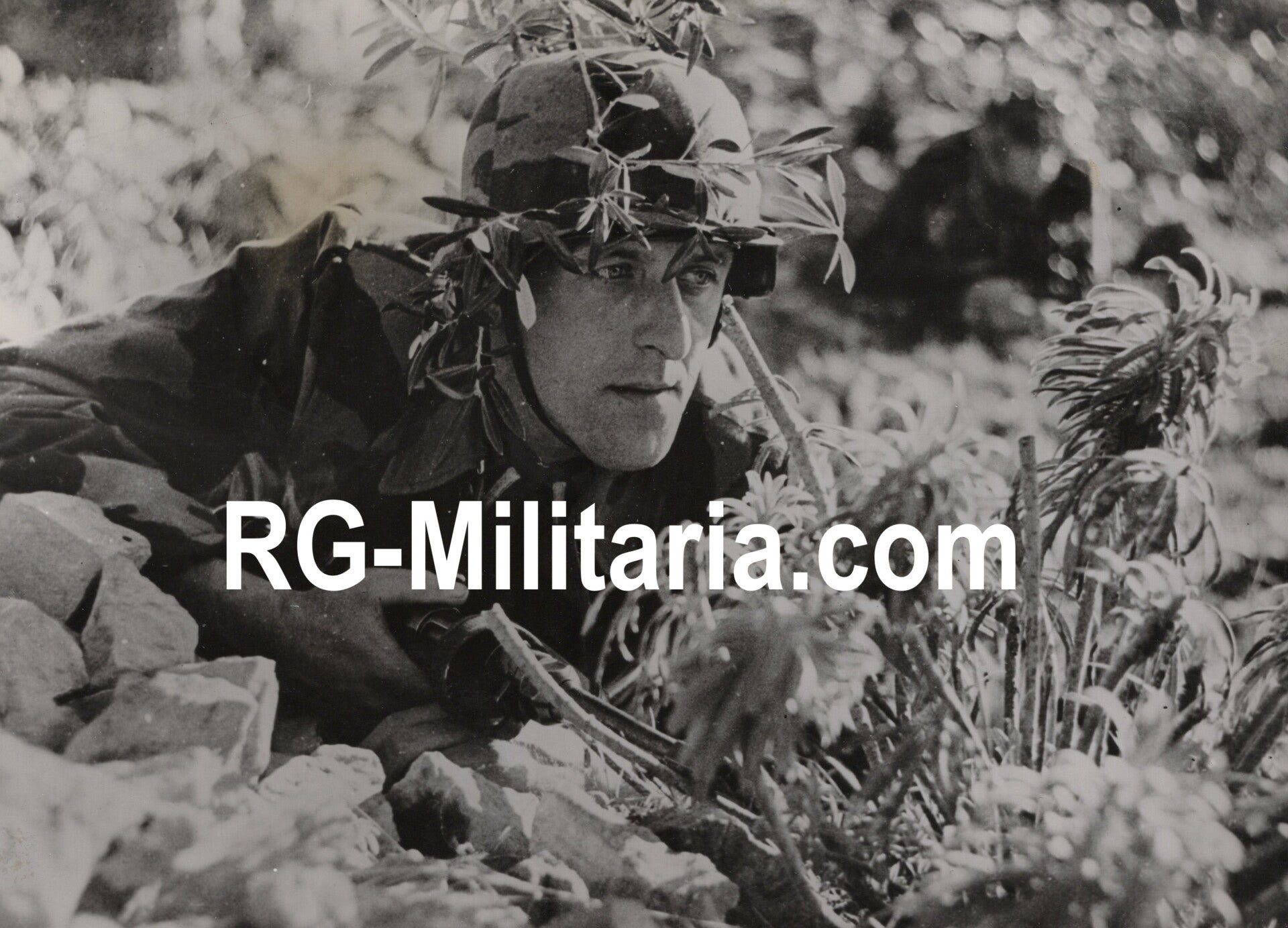 Original WW2 German Press Photo - German soldier in training with camouflage (1944)